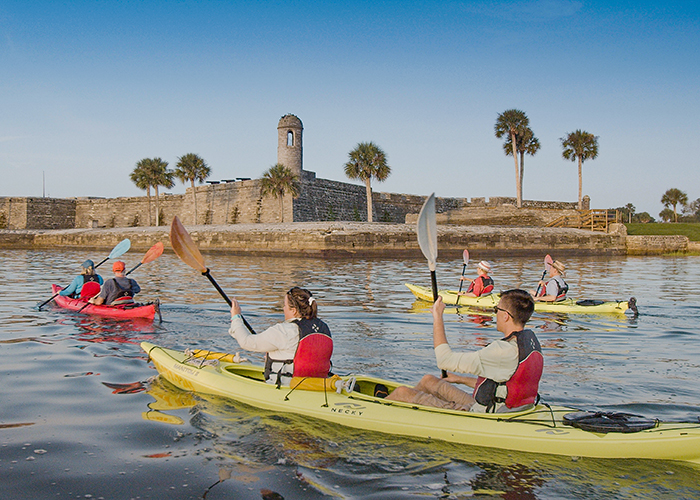 Throughout the month, take a guided glimpses at Historic Downtown St. Augustine on a walking tour with St. Augustine Free Walking Tour, hop on an open-air electric vehicle for a foodie tour with The Tasting Tours, or ride a trolley with Old Town Trolley Tours.