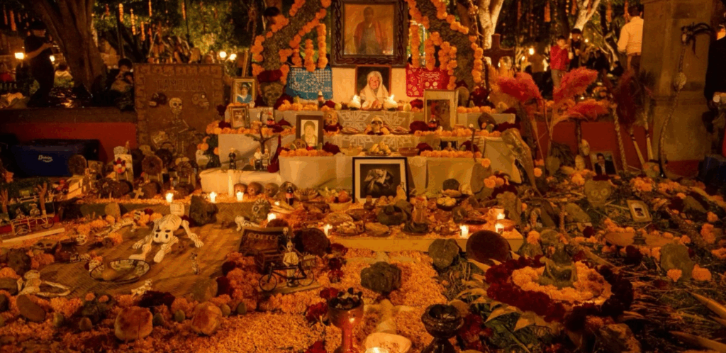 Festivities begin Nov. 1, as families and communities create colorful altares de muertos — altars adorned with marigolds, candles, food, photographs and offerings to honor departed loved ones. The city’s neighborhoods and central plaza become a living gallery, filled with symbolic imagery and heartfelt tributes.